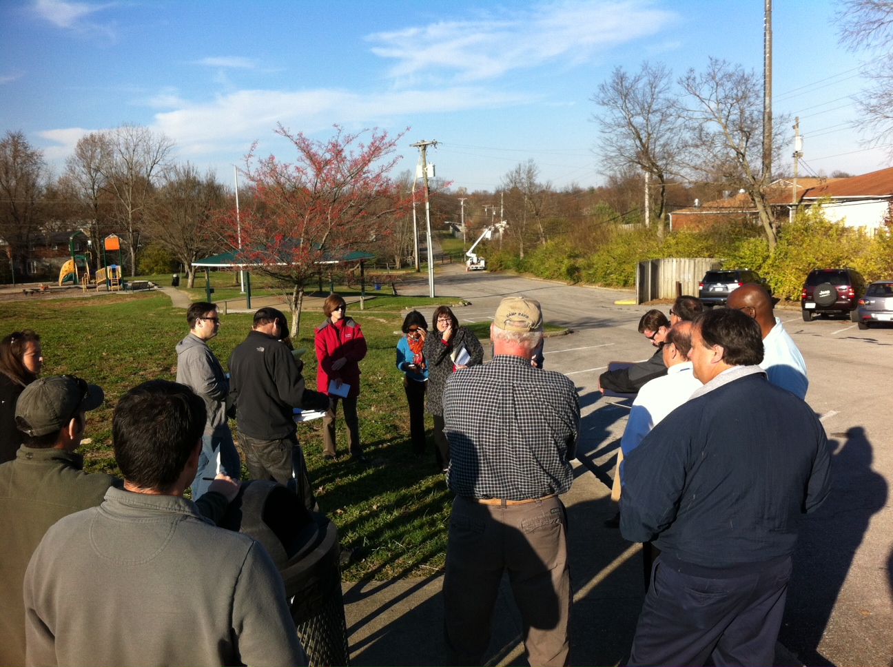 photo 2This Wednesday, this city invited those interested in bidding on the skatepark project out to Berry Hill Park for to answer questions about the RFP process and the overall park design/build desires for the park. After a grand entrance (turning into the park, I clipped the curb with my front right tire and my tire exploded–anyone coming into the park from the gas station might want to watch out for that low-lying curb) I did manage to learn a few things about the project as well…