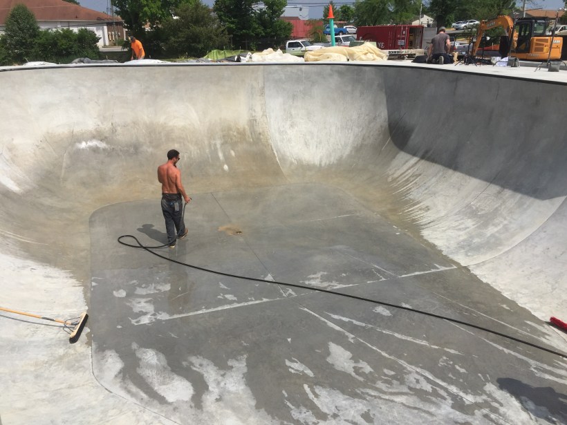 Just left the park and all I can say is “Wow!”  We are coming down the home stretch and I can’t wait to skate this thing!  Stay tuned as we will be announcing a soft opening date soon (when you can actually start skating) with an official grand opening to take place later this summer once all the new park amenities are in place …