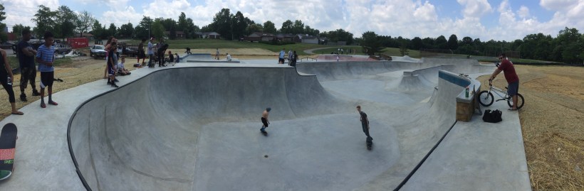 The park was designed and built by Dreamland Skateparks, LLC, an Oregon-based company with more than 20 years experience in skatepark construction. One of Dreamland’s craftsmen, Burke Morris, is a Lexington native who incorporated Bluegrass-themed elements into the design. Some of the concrete in the skatepark was stamped with horseshoes and stylized to mimic limestone, and one of the metal rails features galloping Thoroughbreds.
