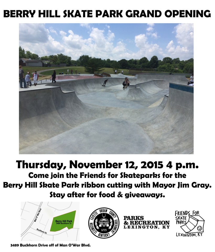 November 12 Grand Opening! November 3, 2015 by gduerson Leave a comment Hello friends! Join us on November 12 as LEXINGTON officially cuts the ribbon on our new skatepark! Share this: Click to share on X (Opens in new window) X Click to share on Facebook (Opens in new window) Facebook Like Loading... Related Author: gduerson Husband. Dad of 5. Simple Church Alliance Director. Skater. UK fan. Famous Rapper.