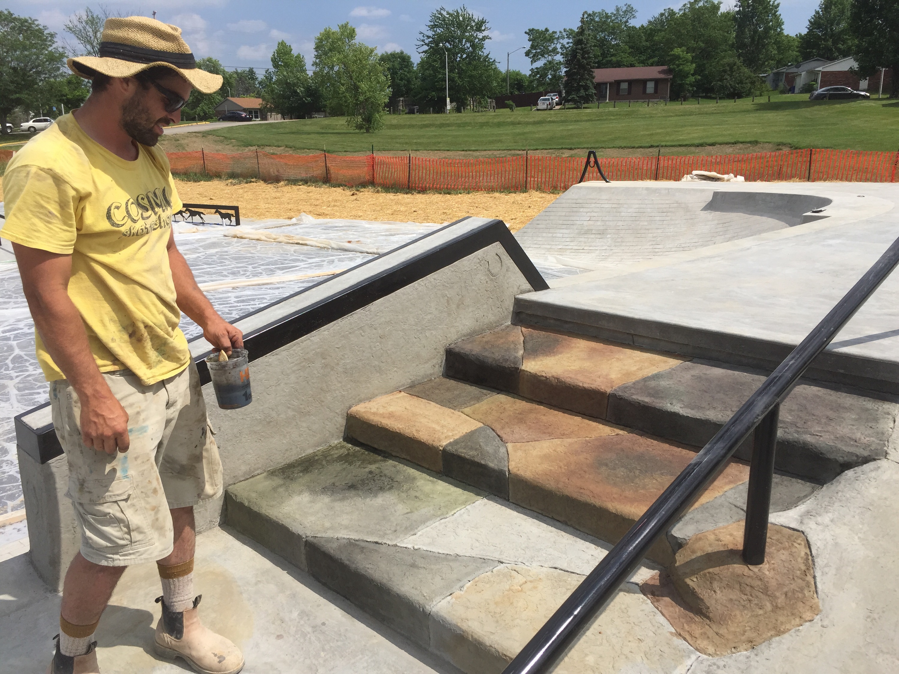 The park was designed and built by Dreamland Skateparks, LLC, an Oregon-based company with more than 20 years experience in skatepark construction. One of Dreamland’s craftsmen, Burke Morris, is a Lexington native who incorporated Bluegrass-themed elements into the design. Some of the concrete in the skatepark was stamped with horseshoes and stylized to mimic limestone, and one of the metal rails features galloping Thoroughbreds.