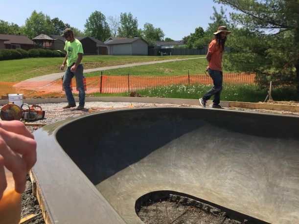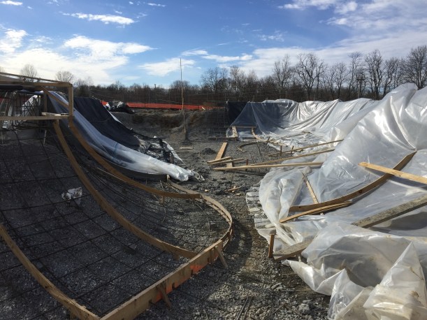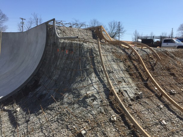 With the nice weather moving in the folks at Dreamland have been making some serious progress on the new park. In today’s Lexington Herald-Leader we get to see some more great pics of the main bowl. You can see the wall above the spine coming together as well as as several new buttery concrete pours!