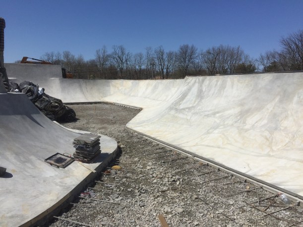 Check out these pictures of park progress! Took them from inside the flow bowl. Props to Dreamland for being cool with me shooting them. Somethings to note… It looks like the flow bowl will actually have a double waterfall with the left side (side closest to old pool house) being a bit more shallow than the right side. Deep end is…. deep! Some really cool things to check out here. Tomorrow I’ll have some updated pictures of the snake run. Enjoy!